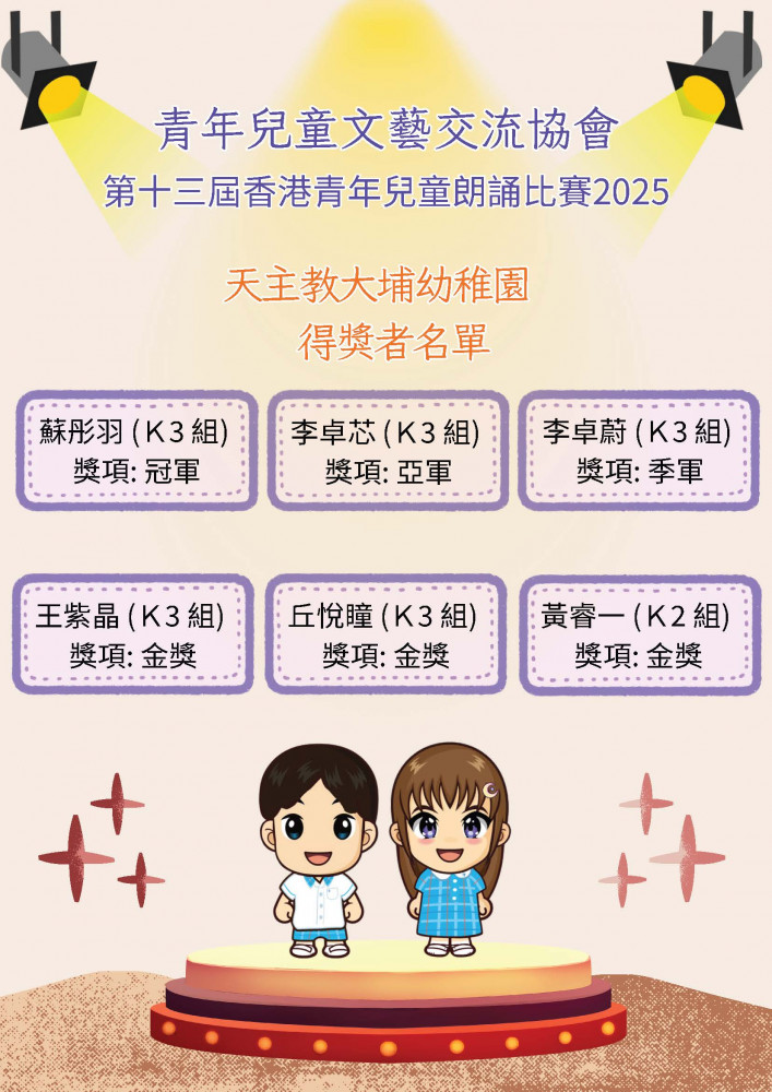 恭喜小朋友在第十三屆香港青年兒童朗誦比賽2025榮獲優異成績